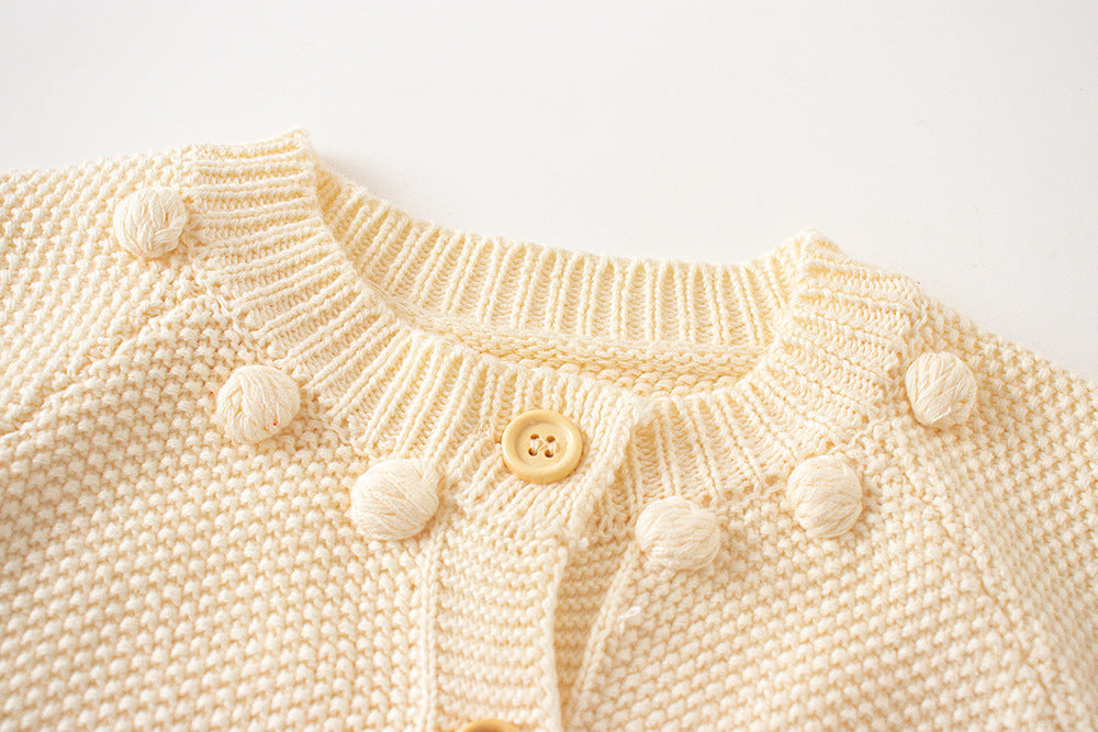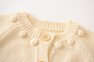 Un set irresistibile per la tua piccola, composto da un cardigan a maniche lunghe e una salopette in maglia, perfetto per ogni occasione. Realizzato in un delicato beige, il design intrecciato con dettagli a pompon aggiunge un tocco di dolcezza e raffinatezza. Questo set combina comfort e stile, ideale per i primi mesi del tuo bebè.