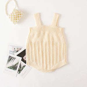 Set Maglia Neonata 2 Pezzi: Cardigan e Salopette in Maglia - Beige Elegante
