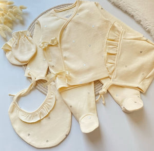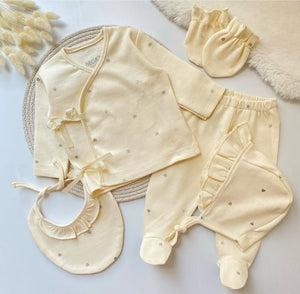 Set Neonata/ Bimba 5 Pezzi in Cotone – Beige Naturale in Cotone