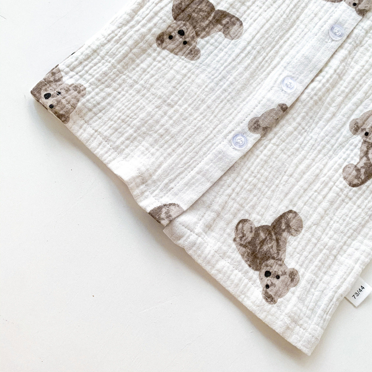 Un outfit irresistibilmente tenero per il tuo piccolo! Questo set neonato in mussola di cotone è perfetto per le giornate più calde, offrendo comfort e traspirabilità. Il design minimal con stampa di orsetti e bottoncini frontali rende il look dolce e raffinato. Il cappellino coordinato con orecchiette aggiunge un tocco giocoso e adorabile.