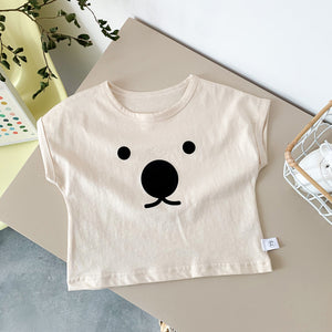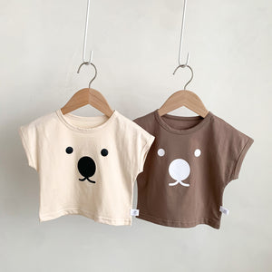 Un tocco di dolcezza per i più piccoli! Queste t-shirt oversize dal design minimalista presentano una simpatica stampa di faccia d’orso, disponibili in due tonalità neutre: beige e marrone. Realizzate in morbido cotone traspirante, offrono massimo comfort e libertà di movimento, ideali per ogni giorno.