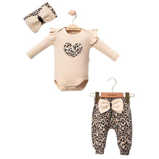 Completo bimba 3 Pezzi con Stampa Leopardata e Fiocco in Cotone
