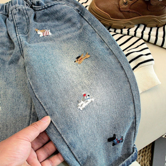 Jeans Bambino con Ricami Cagnolini – Vita Elasticizzata