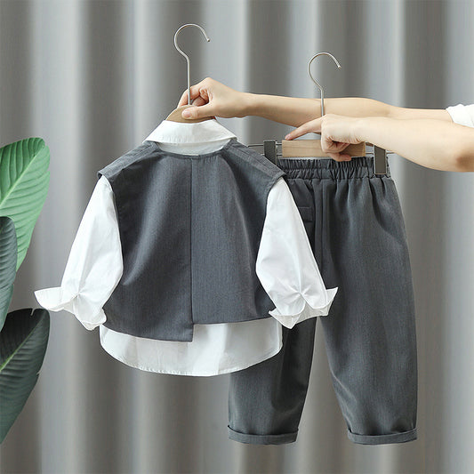 Set 3pz bimbo elegante camicia, gilet e pantalone