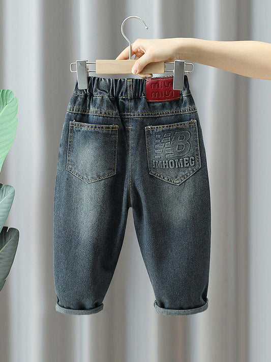 Jeans Bambino con Vita Elasticizzata Modello Casual a Gamba Dritta
