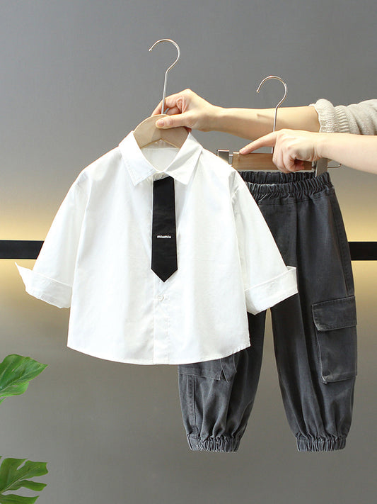 Set 3pz bimbo casual camicia, gilet e pantalone