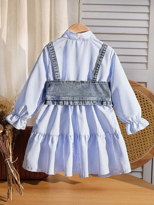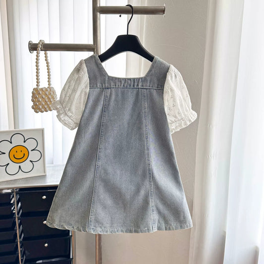 Abito Bambina in Denim e Tulle con Fiocco a Pois