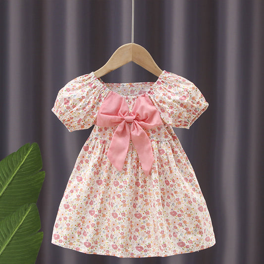 Abitino Estivo Bambina con Stampa Floreale e Fiocco