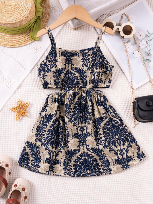 Abito Estivo Bimba Elegante con Spalline Sottili e Stampa Floreale Blu