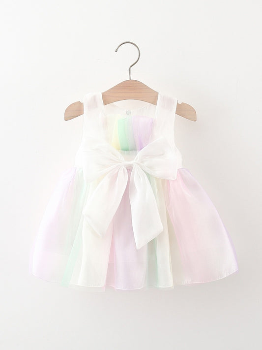 Abito da Cerimonia per Bambina con Fiocco e Sfumature Pastello