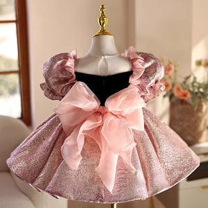 Abito da Cerimonia Bambina Principessa Rosa Lilla con Maniche Voluminose