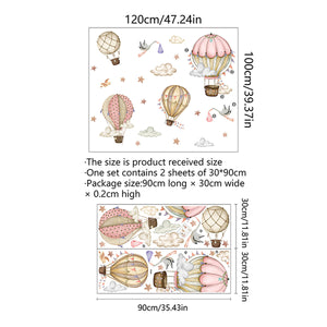 Adesivi murali cameretta – Mongolfiere, nuvole e cicogne (2 fogli 30×90 cm)