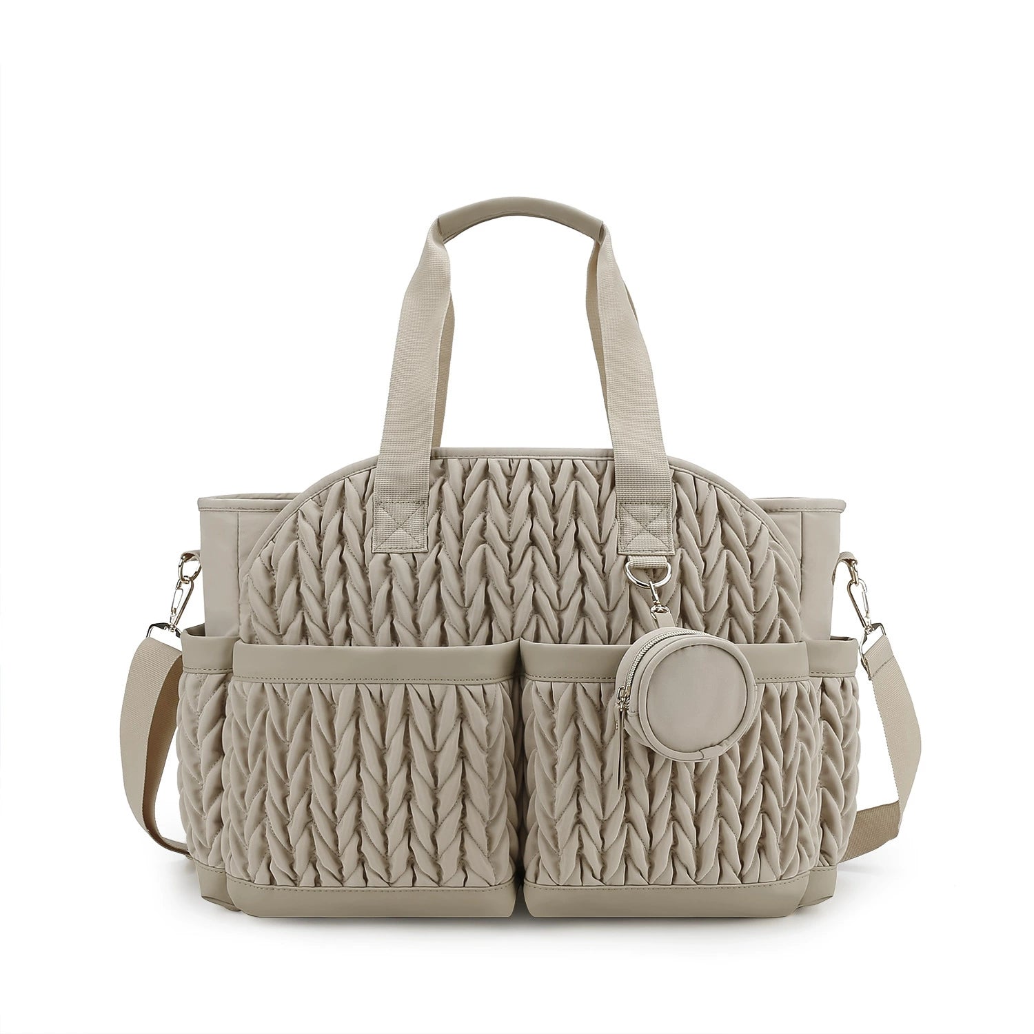 Elegante e capiente borsa fasciatoio ideale per accompagnare ogni uscita con il tuo bambino. Realizzata in tessuto resistente con finitura trapuntata, unisce praticità e stile. Dotata di ampi scomparti interni e tasche esterne porta-biberon, consente di organizzare in modo ordinato tutto l’occorrente per il neonato. La chiusura magnetica rinforzata garantisce sicurezza, mentre la tracolla regolabile e i manici rendono la borsa comoda da portare sia a mano che a spalla.