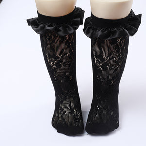 Calze traforate bambina al ginocchio con volant in raso – vari colori