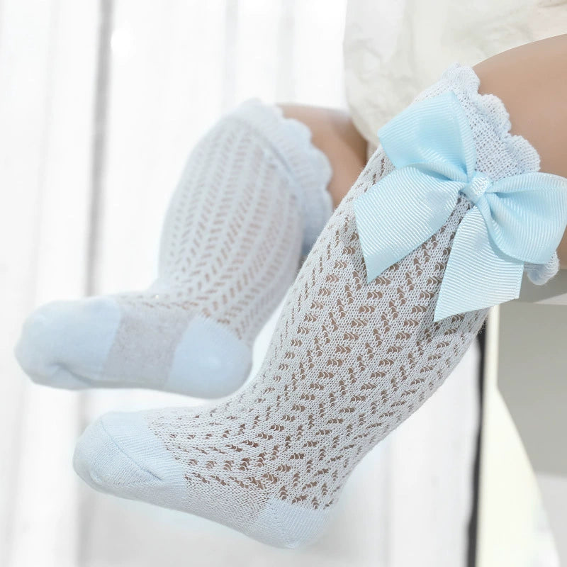 Dolcissimi calzini traforati con fiocco 🎀, ideali per completare ogni outfit elegante o casual della tua bambina.