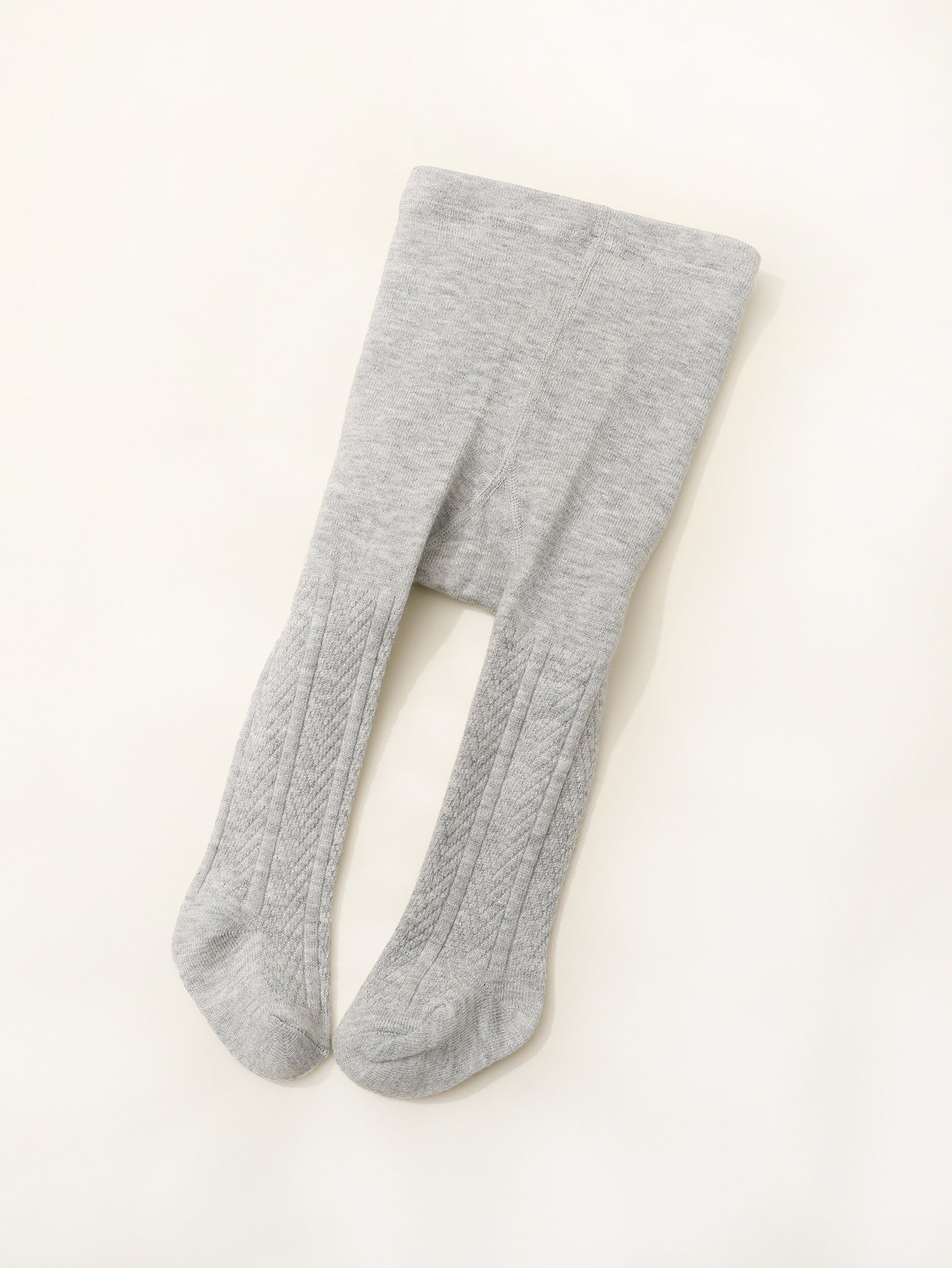 Eleganti collant per bambina in morbido cotone elasticizzato con lavorazione a treccia, ideali per tenere le gambe al caldo durante l'autunno e l'inverno. Disponibili in tre colori neutri e versatili: grigio chiaro, panna e nero. Perfetti da abbinare ad abiti, gonne o tutine per un look comodo e raffinato. La fascia elastica in vita assicura una vestibilità stabile senza stringere.