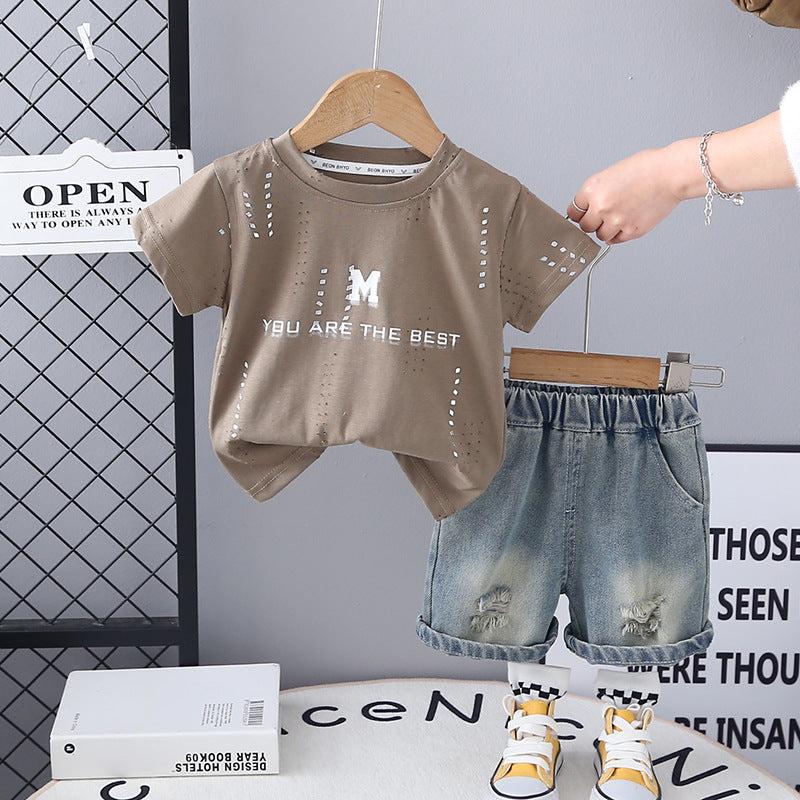Home Completo Estivo Bimbo – T-shirt “You Are the Best” e Shorts in Denim