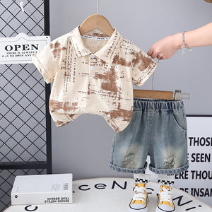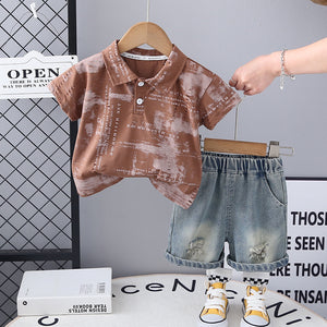 Completo Estivo Bimbo Polo Stampata e Shorts in Denim