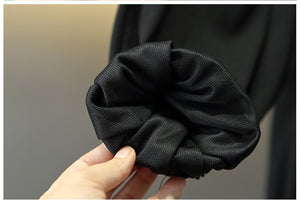 Pantaloni neri morbidi con elastico in vita e polsini alla caviglia, pratici e confortevoli.