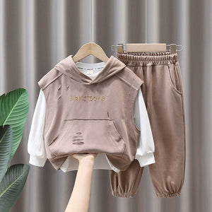 Home Completo bambino con felpa smanicata con cappuccio e pantaloni – 2 varianti