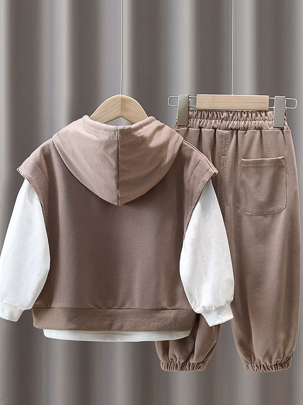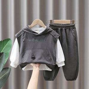 Completo bambino con felpa smanicata con cappuccio e pantaloni – 2 varianti
