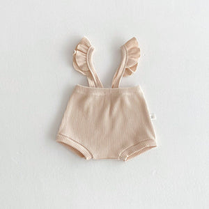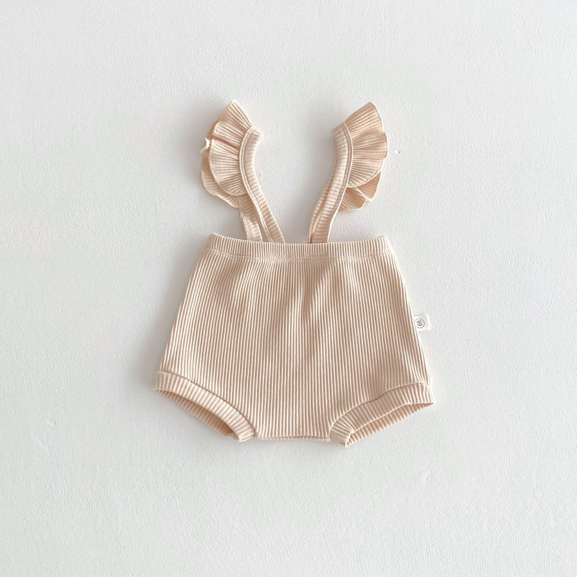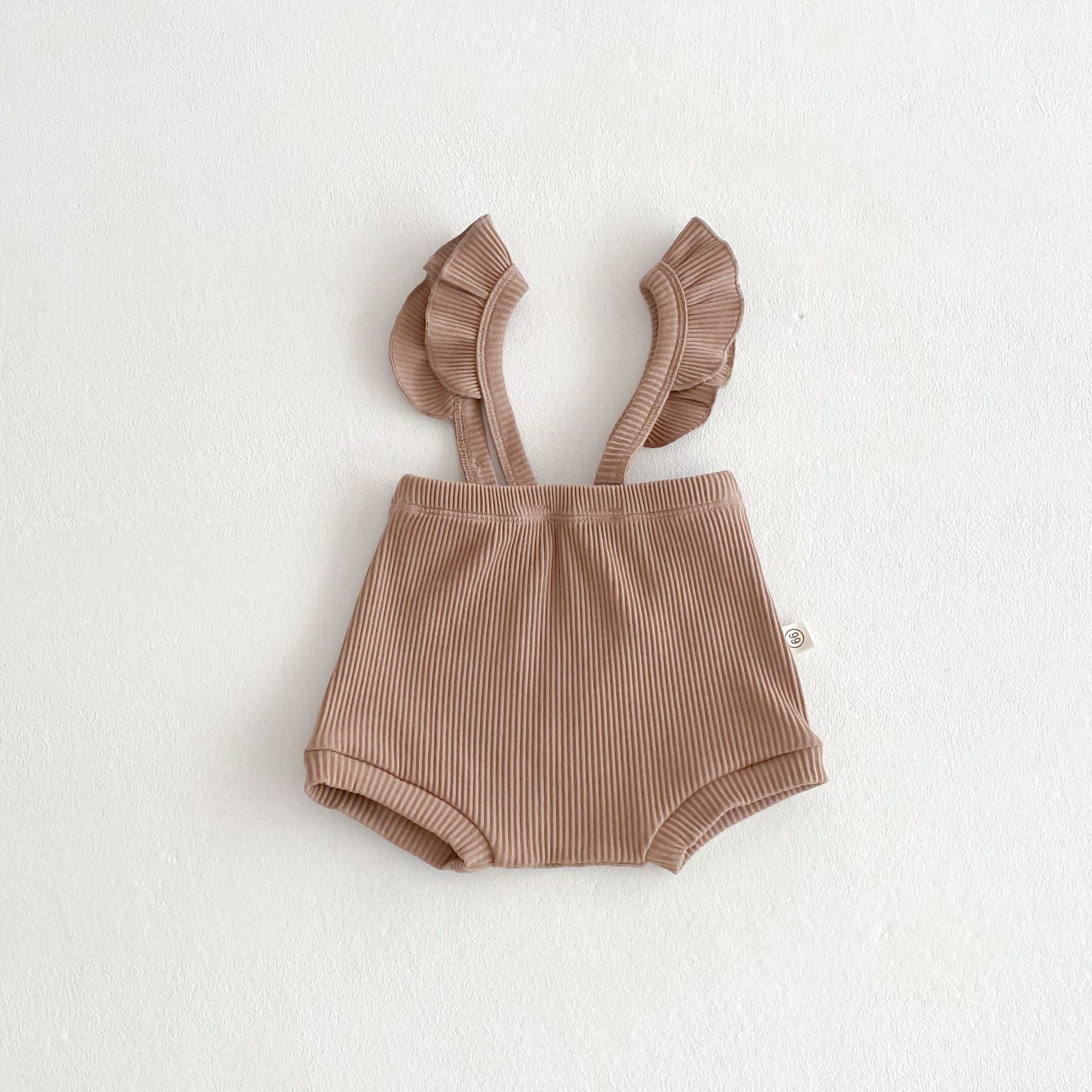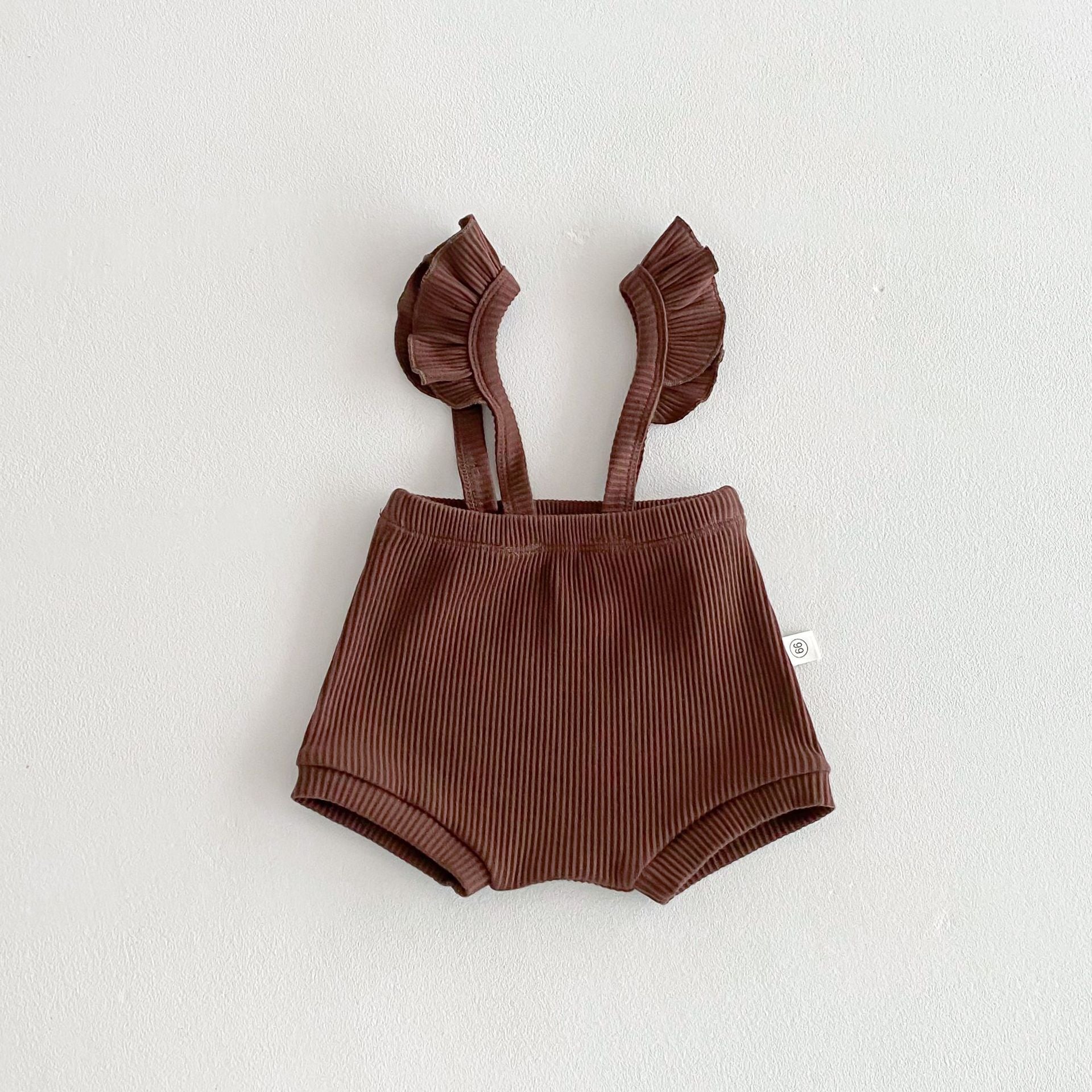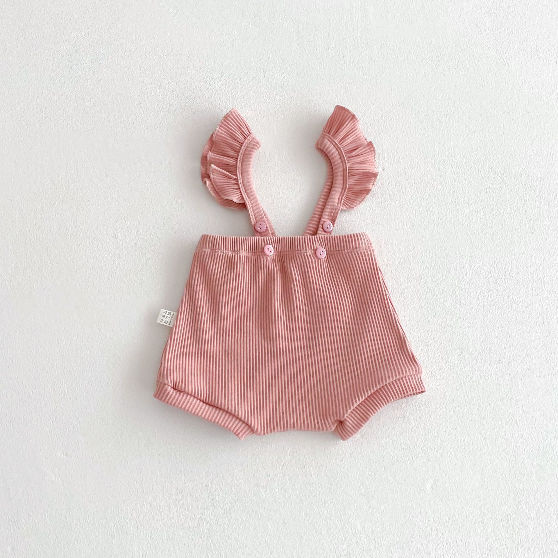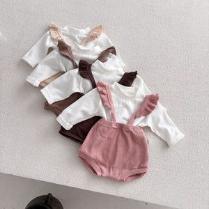 Completo bimba in velluto a coste con bretelle e volant Vari colori