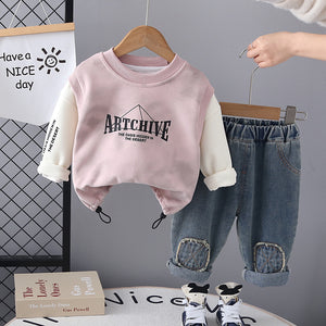 Completo Bimbo Felpa “Artchive” e Jeans Look Casual Autunno/Inverno