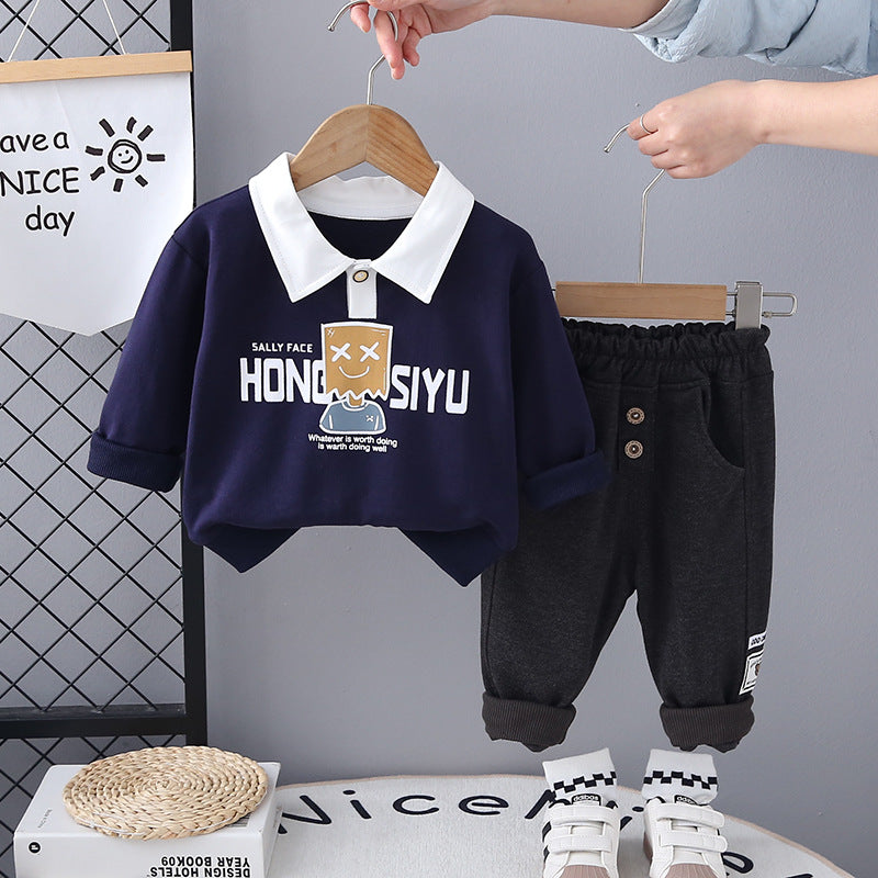 Home Completo Casual Bimbo "Cool Mood" Felpa con Colletto e Pantaloni