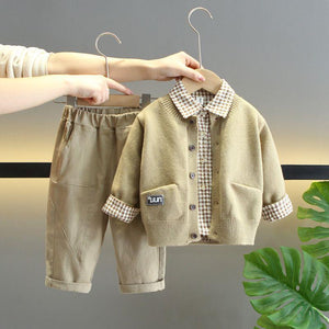 Completo Elegante Bambino 2 Pezzi Camicia a Quadri + Maglioncino + Pantaloni