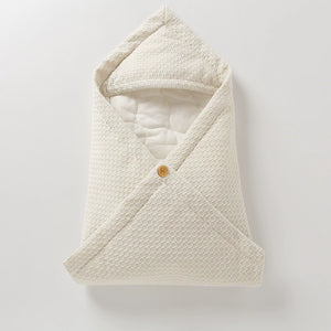Avvolgi il tuo bimbo in un caldo abbraccio! Questa coperta fasciatoio in cotone strutturato beige è perfetta per i primi mesi di vita. Il design con cappuccio e chiusura a fascia garantisce comfort, calore e sicurezza durante il sonno o i momenti di coccole. Realizzata con tessuti delicati sulla pelle, è ideale per casa, passeggino o carrozzina.