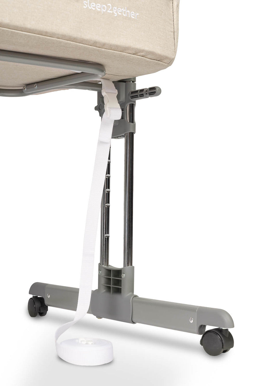 può essere utilizzato come culla indipendente, ma fiorisce dopo aver rimosso la parete anteriore. Sleep2gether può essere utilizzato a lato del letto di un adulto. Ciò consente di nutrire e allattare il bambino senza lasciare il letto. Il peso leggero e le ruote integrate aumentano la mobilità, mentre il meccanismo di regolazione dell'altezza consente un'installazione rapida e semplice. La culla può anche essere posizionata in un angolo per aiutare a far addormentare il bambino e per evitare che sputi.