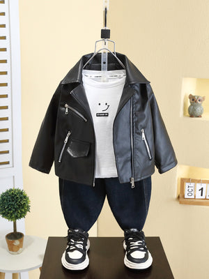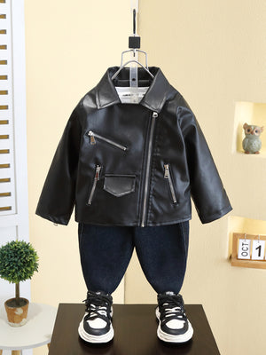 Giacca in ecopelle dal look biker, perfetta per aggiungere grinta e stile al guardaroba dei più piccoli.