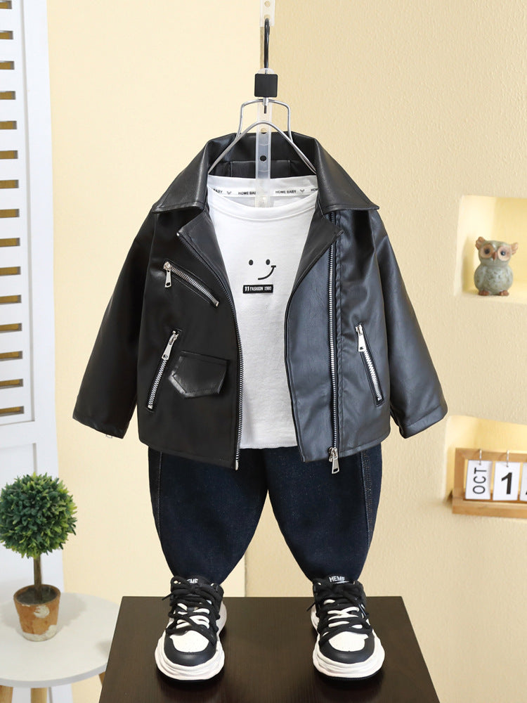 Home Giacca Bambino in Ecopelle – Stile Biker con Zip