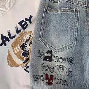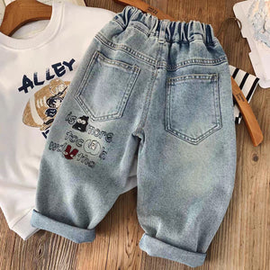 Home Jeans Bambino con Ricami Cartoon e Scritta