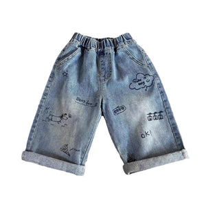 Shorts Bambino in Jeans con Stampa Doodle Casual e Creativi