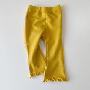 Colorati, comodi e super versatili! Questi leggings per bambina sono realizzati in morbido cotone elasticizzato e disponibili in sei vivaci varianti: nero, panna, grigio, turchese, rosa e giallo. Il dettaglio arricciato sul fondo gamba aggiunge un tocco femminile e giocoso, perfetto per look casual o da tutti i giorni. Facili da abbinare e ideali in ogni stagione, sono un must-have per il guardaroba delle più piccole.