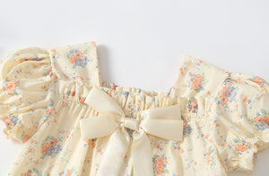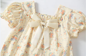Dolcezza e raffinatezza si incontrano in questo Pagliaccetto floreale avorio, perfetto per le bimbe che amano il comfort senza rinunciare allo stile! 💛 Il design vintage con maniche a sbuffo, il fiocco in raso e la delicata fantasia floreale lo rendono un capo unico per occasioni speciali. Il tessuto leggero e traspirante garantisce freschezza e libertà di movimento, mentre il cappellino coordinato completa il look con eleganza.