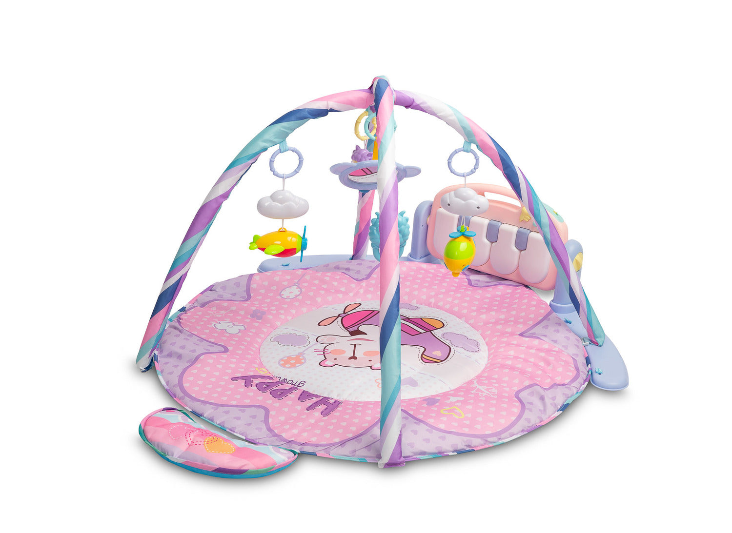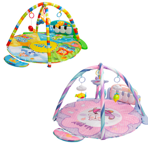 Il colorato tappetino musicale di Toyz è un ottimo posto per far giocare i più piccoli. È realizzato in tessuto di poliestere facile da pulire con un'imbottitura morbida che isola e offre comfort. È dotato di un cuscino che fornirà ulteriore comfort quando si gioca in posizione sdraiata. I giocattoli sensoriali sono sospesi dal rialzo per stimolare lo sviluppo del bambino e catturare la sua attenzione. La più grande attrazione del tappetino è la grande tastiera musicale. Ha quattro grandi tasti che producono suoni, nonché pulsanti per cambiare il loro suono in 1 dei 3 tipi. È inoltre dotato di un pulsante che attiva melodie morbide e un controllo del volume a 2 stadi. La tastiera è alimentata da 3 batterie AA.
