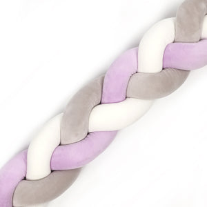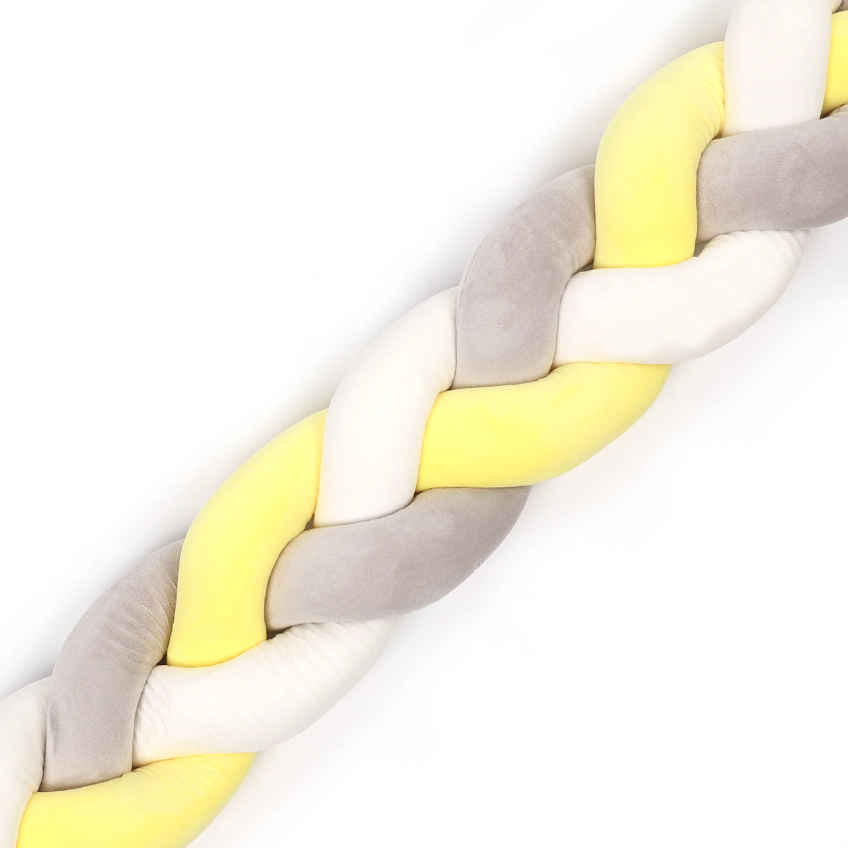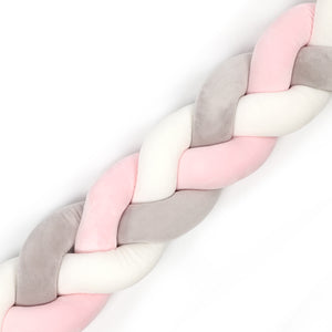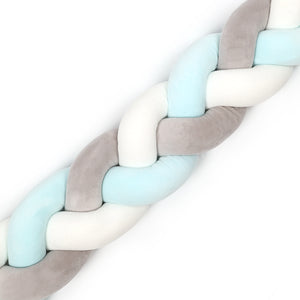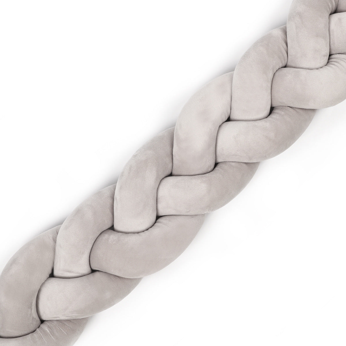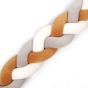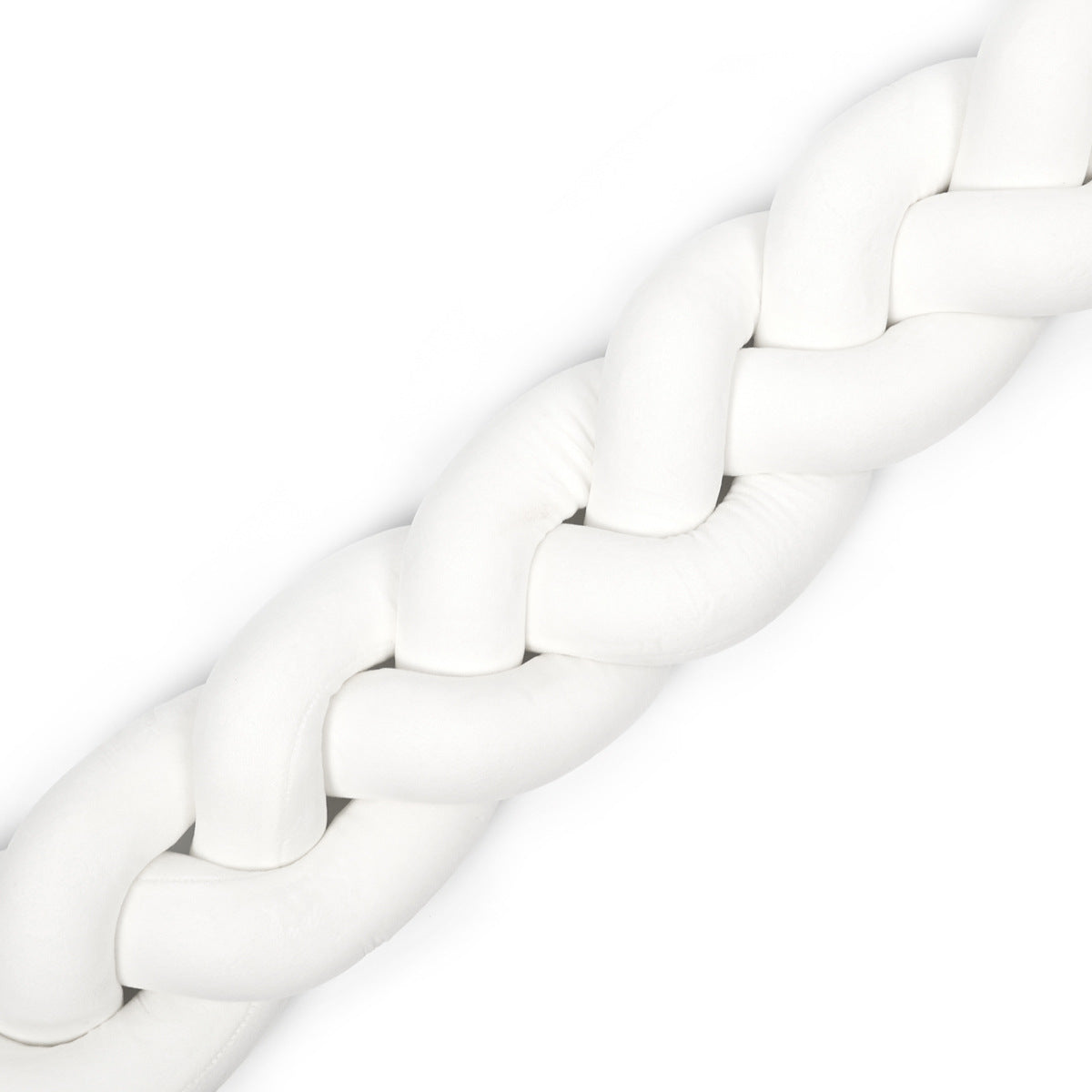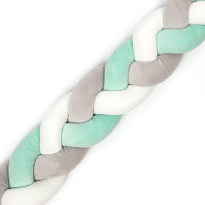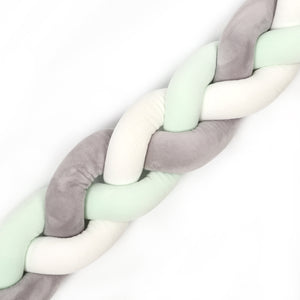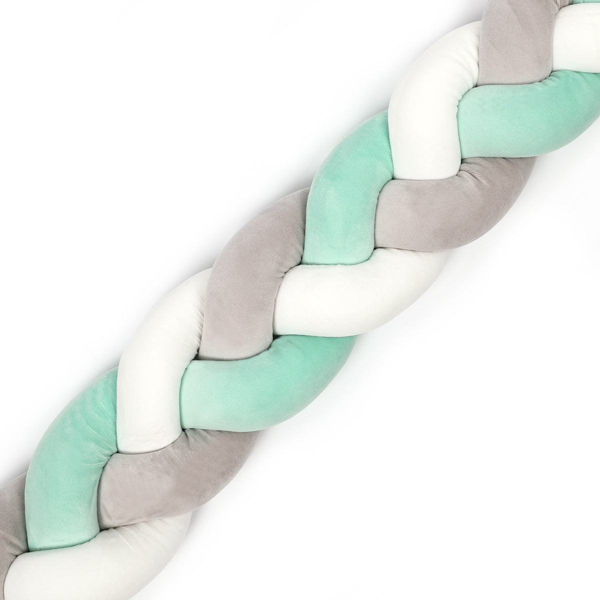 Morbido paracolpi intrecciato in velluto, ideale per proteggere il bambino durante il sonno e creare un ambiente accogliente e sicuro. La sua forma a treccia permette di adattarlo facilmente a culla, lettino, carrozzina o box. Disponibile in diversi colori moderni e delicati, è perfetto anche come decorazione per la cameretta.