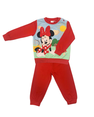 Dolci sogni con Minnie Mouse! Questo adorabile pigiama per bambine è disponibile in due varianti di colore: rosso e fucsia. La maglia a maniche lunghe presenta una stampa colorata di Minnie in un paesaggio allegro e soleggiato, perfetta per accompagnare le piccole nei loro sogni più belli. I pantaloni abbinati, con polsini elasticizzati, garantiscono il massimo comfort e libertà di movimento. Realizzato in cotone morbido e traspirante, ideale per le stagioni fresche. Un regalo perfetto per tutti i fan della dolce Minnie!
