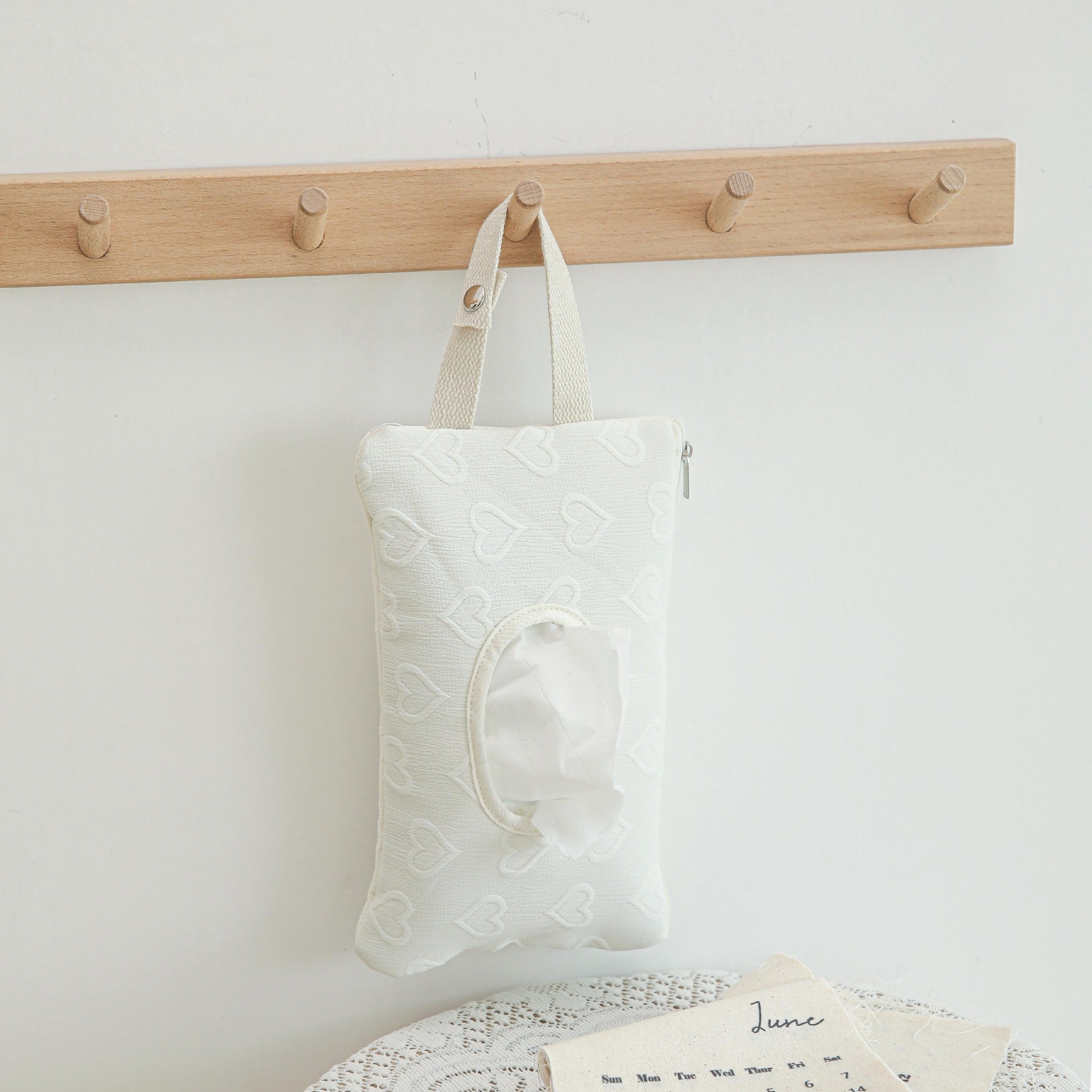 Home Porta Salviette da Viaggio in Tessuto – Con Manico, Cuori in Rilievo, Rosa o Bianco
