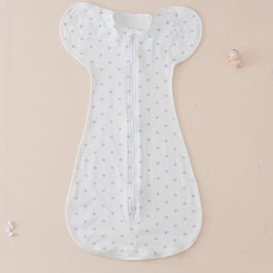 La zip centrale facilita i cambi pannolino, mentre la forma a farfalla permette al neonato di dormire in una posizione naturale con le braccia sollevate, favorendo un sonno sicuro e prolungato.