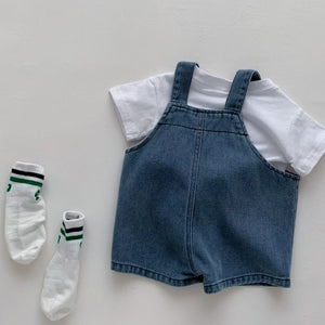 Un look casual e divertente per i piccoli avventurieri! Questo completo estivo da bambino è composto da una t-shirt bianca in cotone con stampa “Blah Blah” minimal e simpatica, abbinata a una salopette corta in denim con bretelle regolabili e tasca frontale. Comodo, fresco e facile da indossare, è perfetto per le giornate di gioco, passeggiate all’aperto o look quotidiani pieni di stile. Un outfit versatile che unisce praticità e originalità.