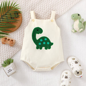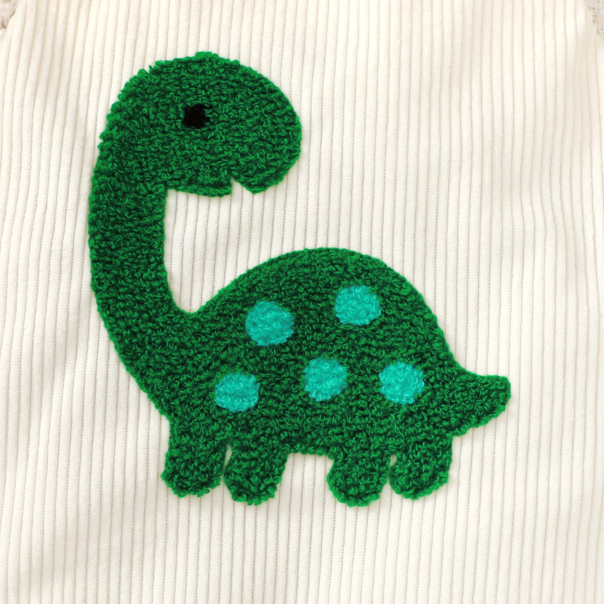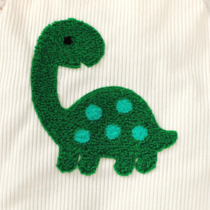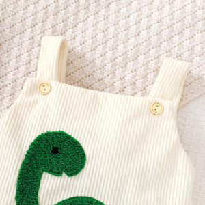 Salopette Neonato in Costina con Dinosauro Ricamato
