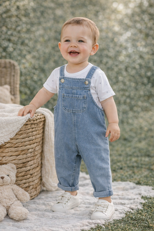 Salopette in morbido tessuto 95% cotone, comoda e resistente, ideale per la stagione autunno/inverno. Modello con spalline regolabili, tasca frontale e fondo risvoltabile. Disponibile in tre varianti: denim azzurro, righe e cachi. Perfetta per look pratici e stilosi ogni giorno.
