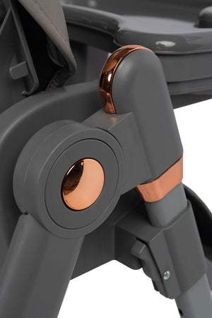 L'imbracatura di sicurezza a 5 punti con caratteristiche regolabili mantiene efficacemente il bambino al sicuro. I cuscinetti antiscivolo in gomma integrati impediscono alla sedia di scivolare e proteggono i pavimenti delicati dai graffi. |