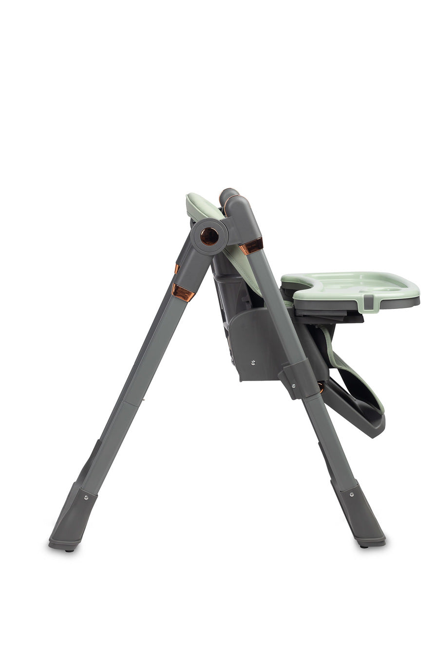 L'imbracatura di sicurezza a 5 punti con caratteristiche regolabili mantiene efficacemente il bambino al sicuro. I cuscinetti antiscivolo in gomma integrati impediscono alla sedia di scivolare e proteggono i pavimenti delicati dai graffi. |