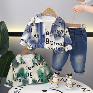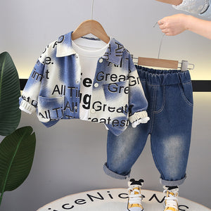 Set 3pz bimbo casual jeans , Maglietta e giacca