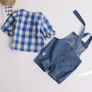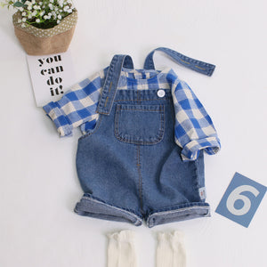 Completo Estivo Bimbo con Salopette in Jeans e Camicia a Quadri