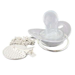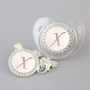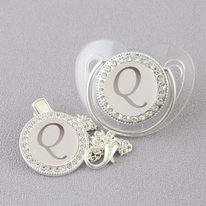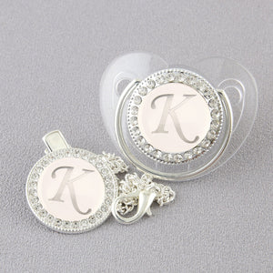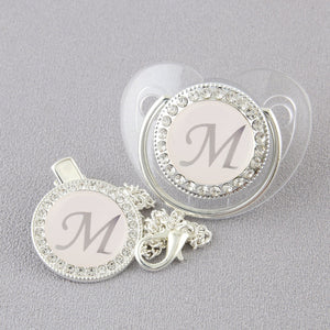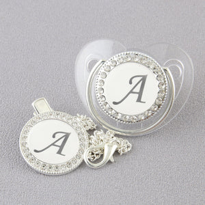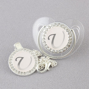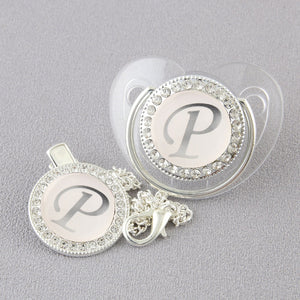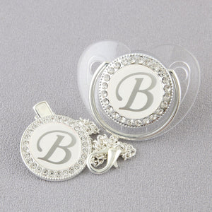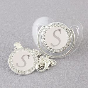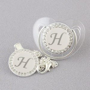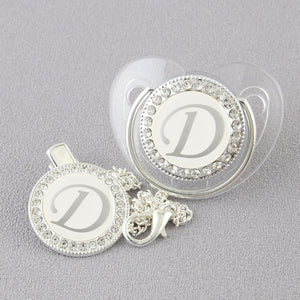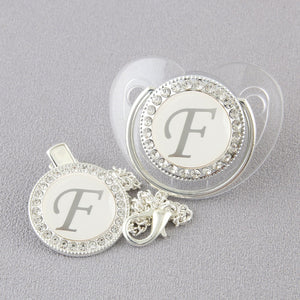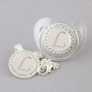 Set Ciuccio Trasparente e argento  Luxury con Clip – Personalizzato con Iniziale 6-12 mesi